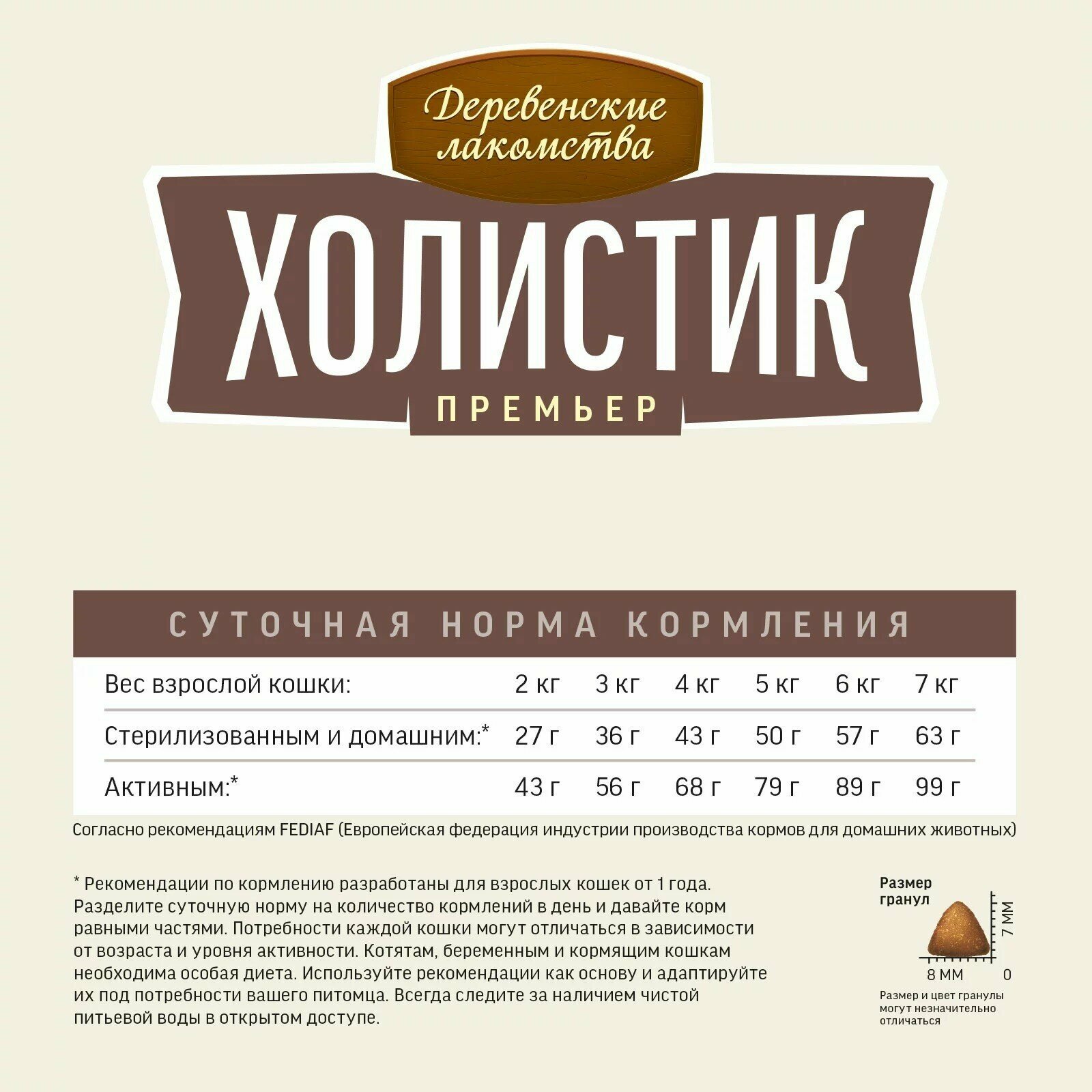 | Возраст животного | взрослые (1-6 лет) / котята (до 1 года) / пожилые (7+) |