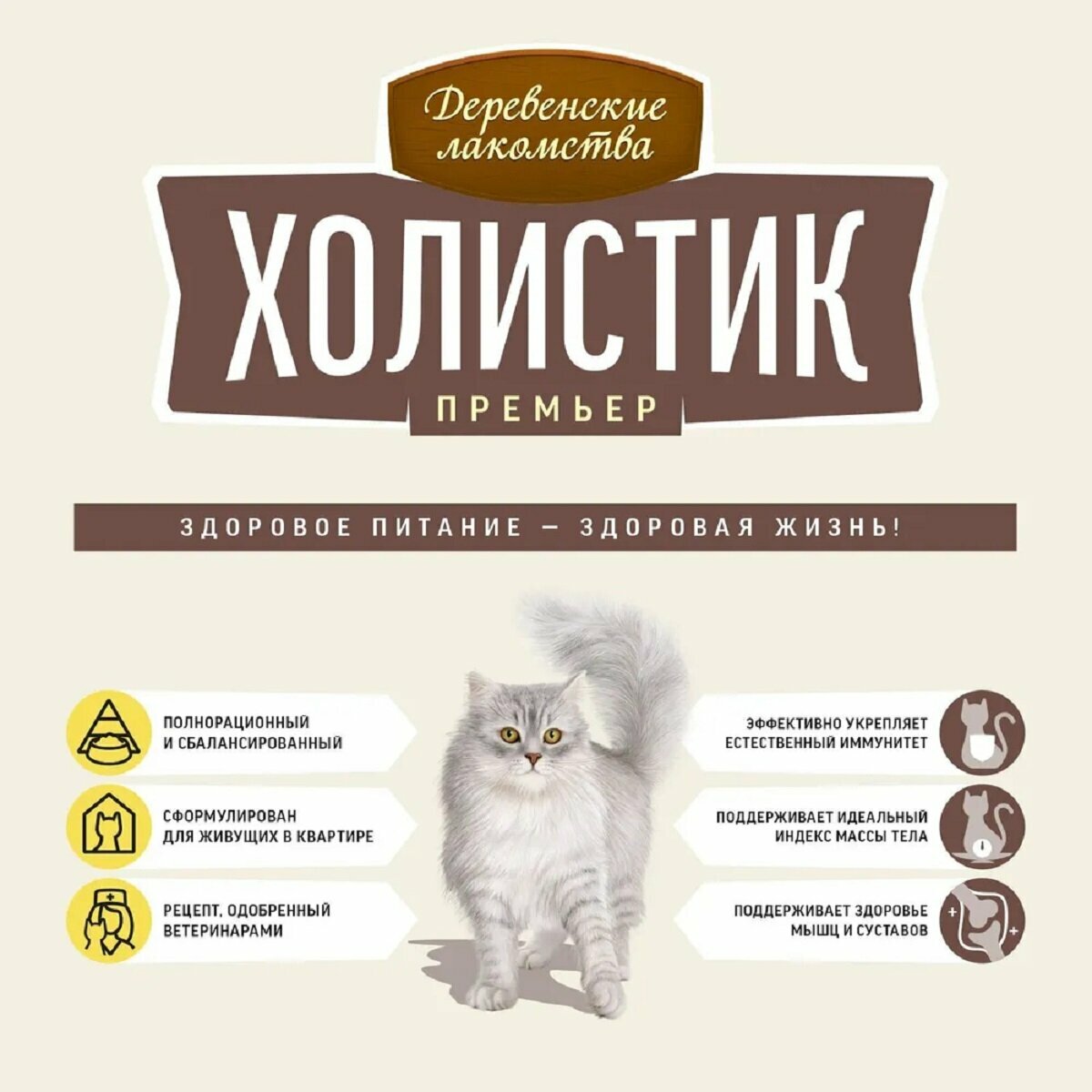 Деревенские Лакомства Холистик Премьер - Сухой корм для поддержки иммунитета кошек с говядиной (2 кг)
