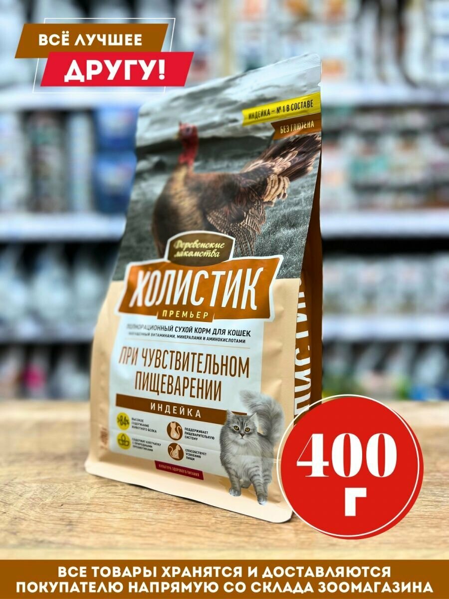 Сухой корм Деревенские лакомства Холистик Премьер 400г индейка при чувствительном пищеварении для кошек (792131