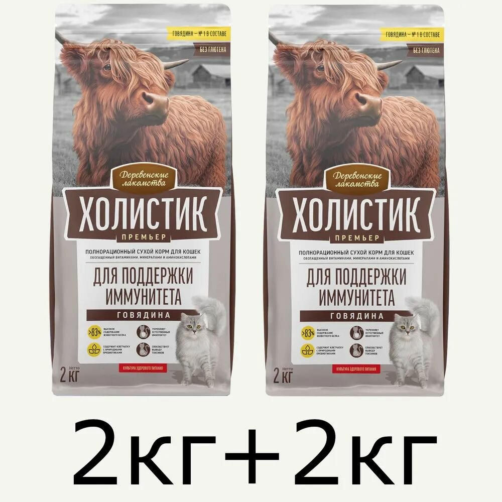 Купить 2кг+2кг Сухой полнорационный корм деревенские лакомства холистик премьер для поддержки иммунитета кошек с говядиной