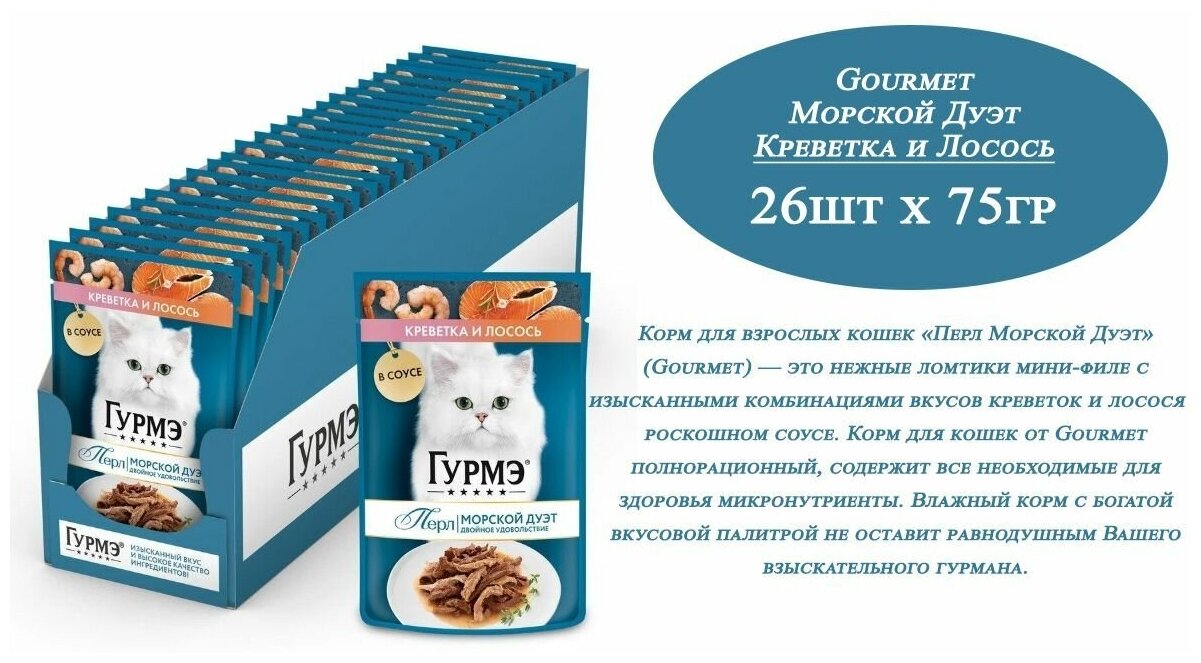 Влажный корм для кошек Gourmet гурмэ Перл Морской Дуэт с креветкой и и лососем 26шт.*75г