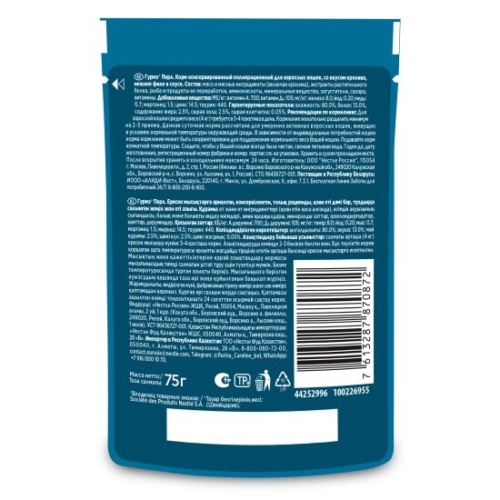 Влажный корм Паучи Пурина Гурмэ Перл Морской дуэт для взрослых кошек филе в соусе креветка и лосось (цена за упаковку) 75г х 26шт