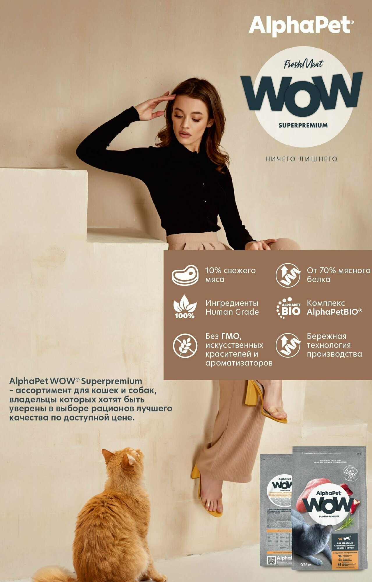 Корм AlphaPet WOW Superpremium для домашних кошек и котов, c уткой и потрошками, 350 г