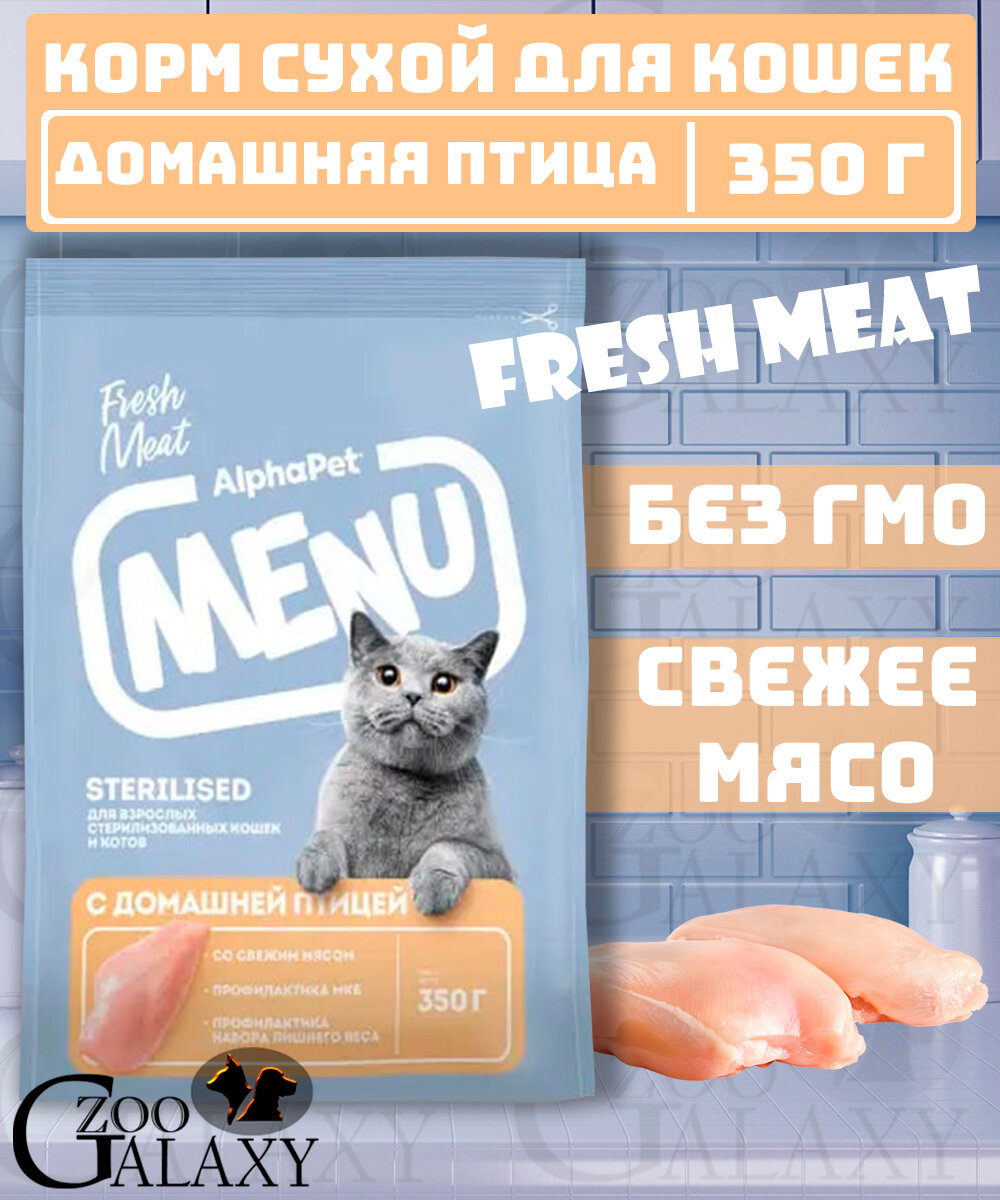 ALPHAPET MENU Сухой корм для стерилизованных кошек с птицей 350 г