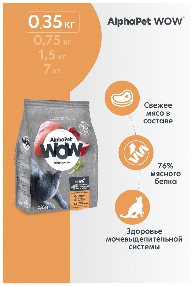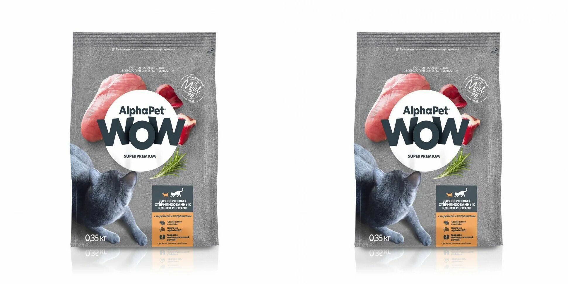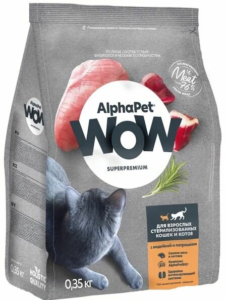 ALPHAPET WOW SUPERPREMIUM 350 гр сухой корм для взрослых стерилизованных кошек и котов с индейкой и , шт (10 шт)