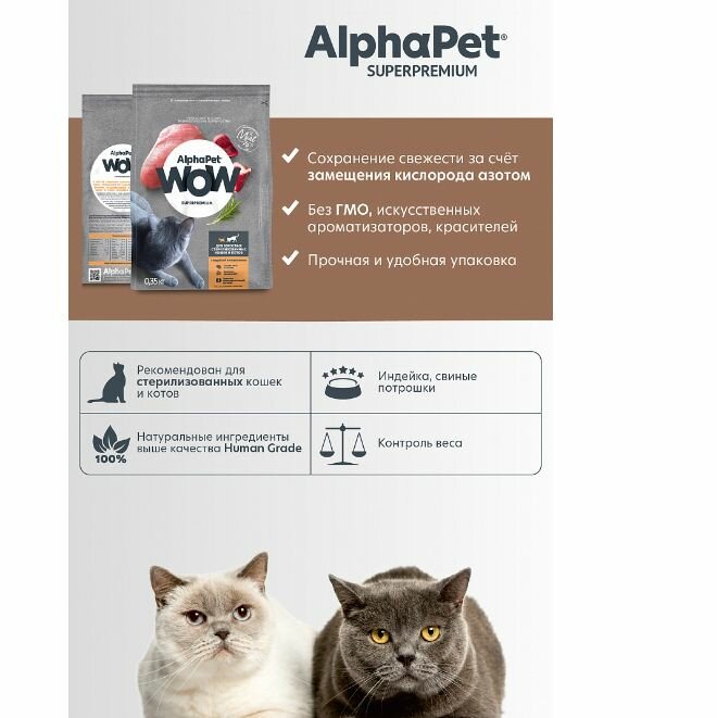 Корм AlphaPet WOW Superpremium для стерилизованных кошек и котов, c индейкой и потрошками, 1.5 кг
