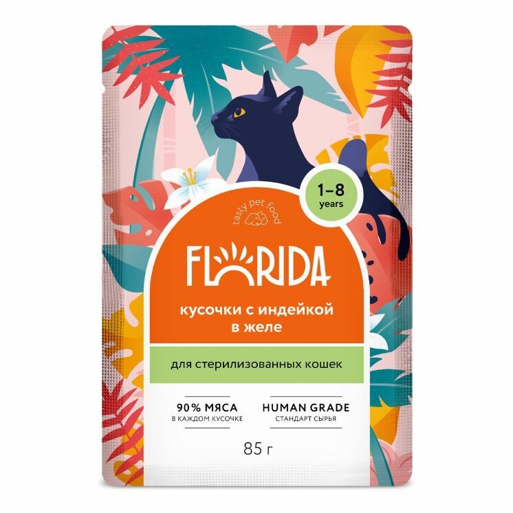 Купить Florida паучи для стерилизованных кошек (кусочки в желе) Индейка, 85 г. упаковка 12 шт