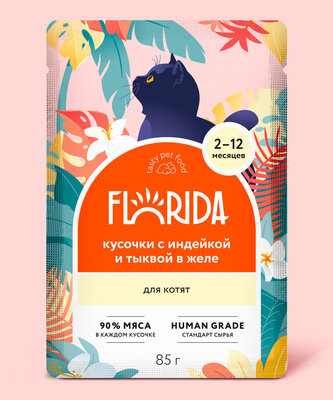 Купить FLORIDA для котят с индейкой и тыквой в желе (85 гр х 12 шт)