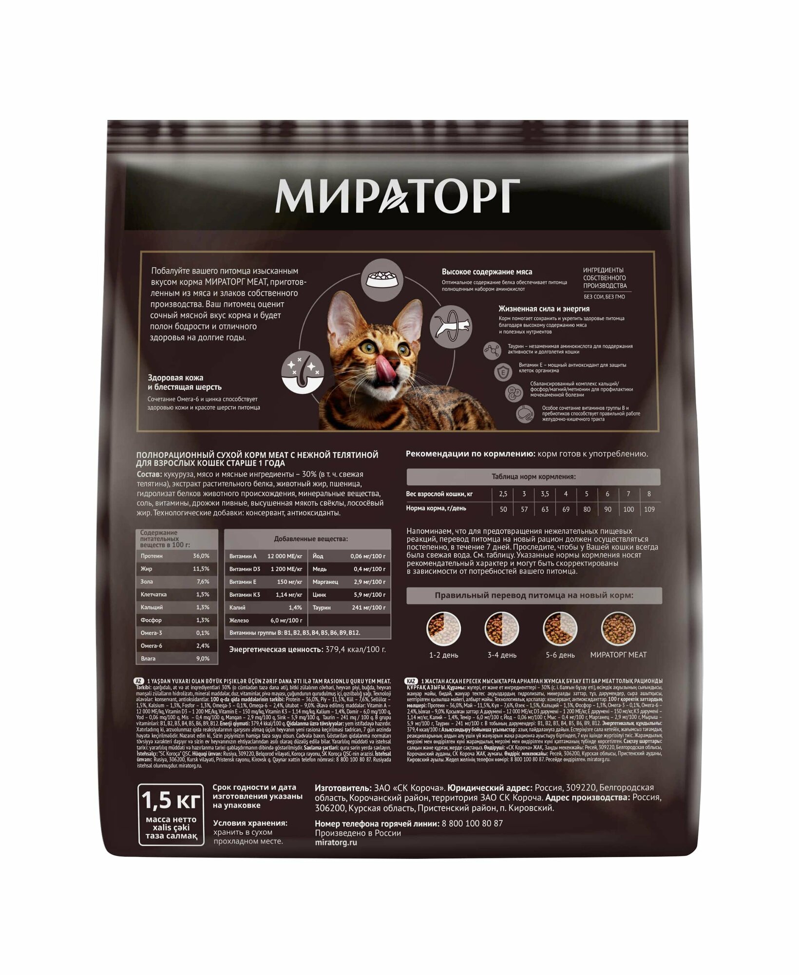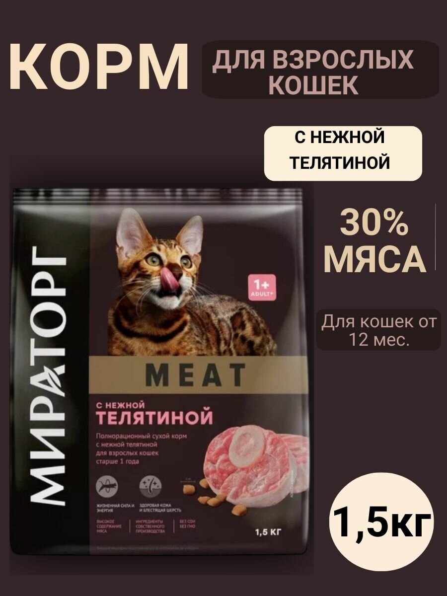 Корм сухой Мираторг Meat с нежной телятиной для взрослых кошек старше 1 года, 1,5 кг