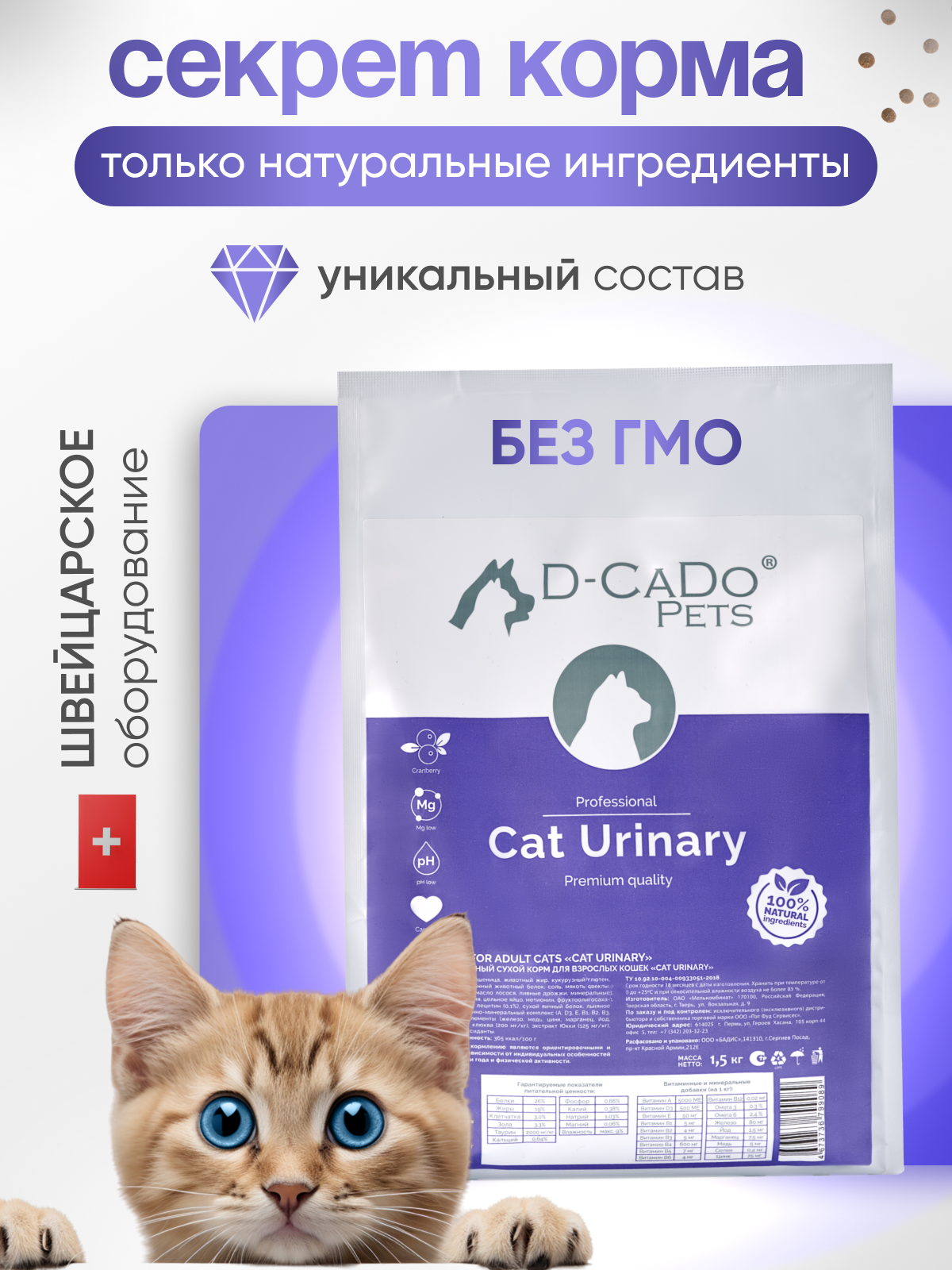 Корм D-CaDo "Urinary Cat", сухой, для взрослых и пожилых кошек, сухой, 1500г