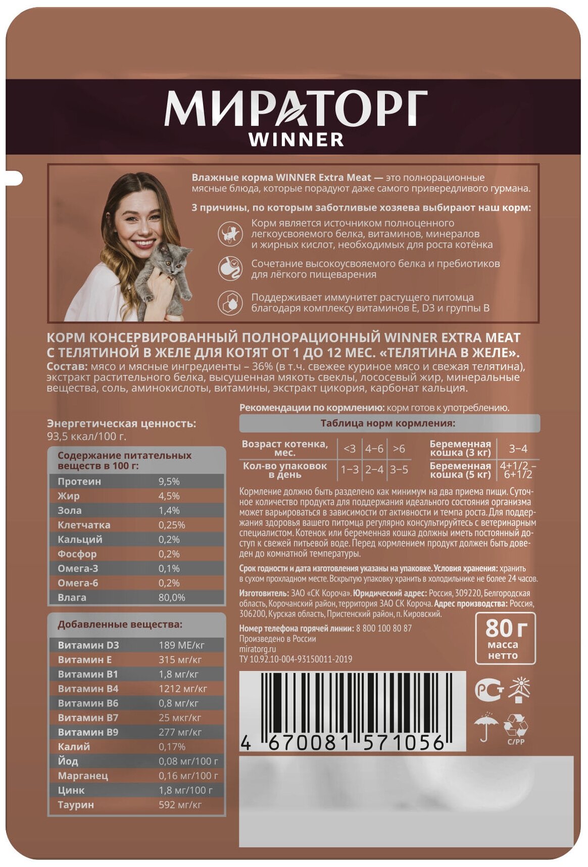 Ниже Вы можете прочитать отзывы на Корм конс. полнорационный Winner Extra Meat с телятиной в желе для котят от 1 до 12 мес "Телятина в желе" 0,08 кг*24 (1,92 кг), ознакомится с подробными характеристиками, посмотреть интересные обзоры и фотографии на Корм конс. полнорационный Winner Extra Meat с телятиной в желе для котят от 1 до 12 мес "Телятина в желе" 0,08 кг*24 (1,92 кг).