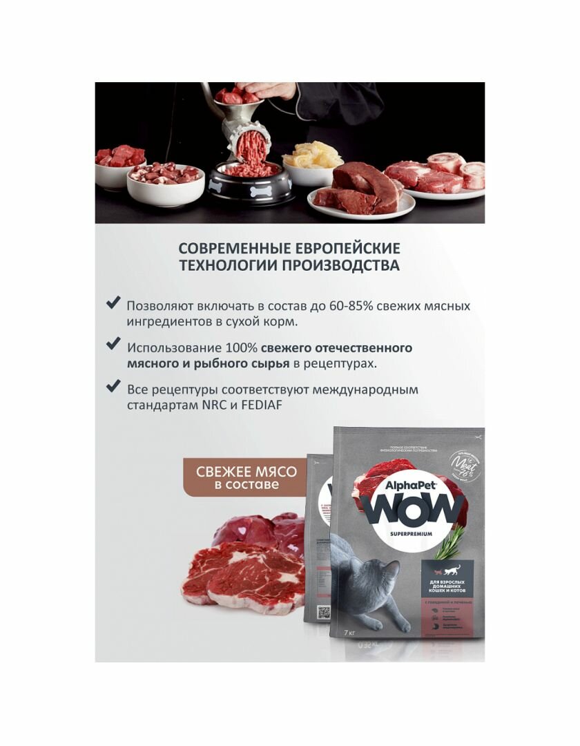 Сухой корм для кошек полнорационный AlphaPet WOW Superpremium c говядиной и печенью, 1,5кг (АльфаПет) интересное: