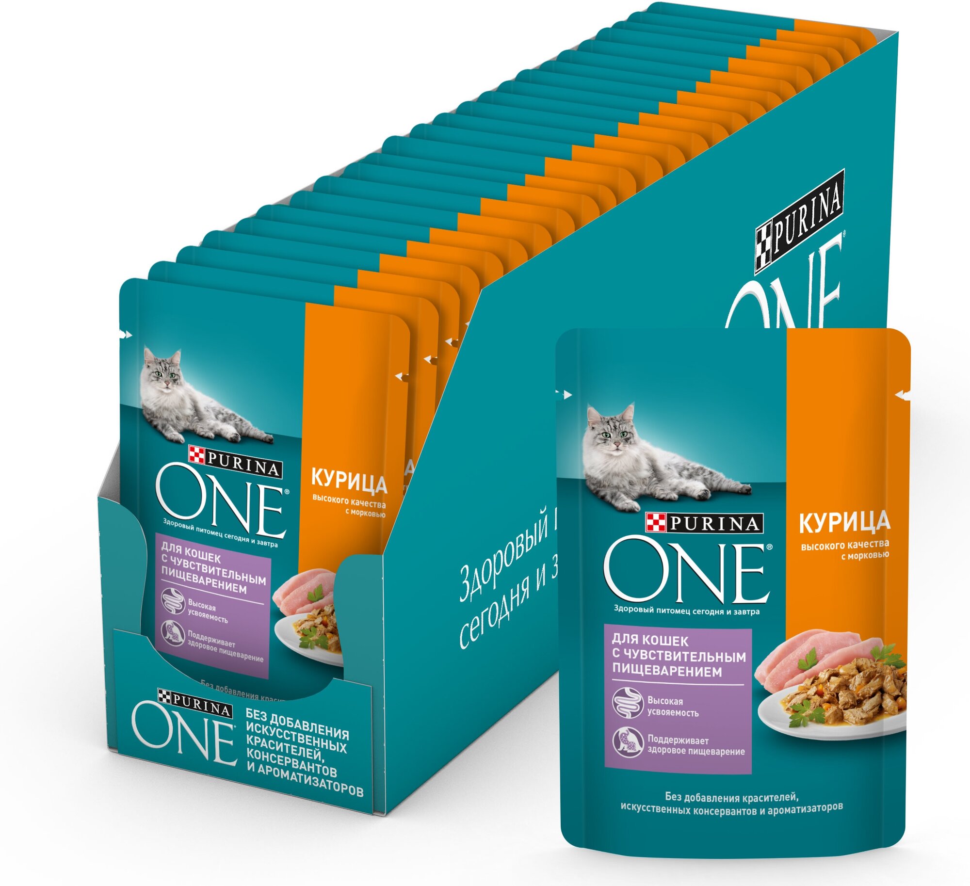 Purina ONE 75 г пауч влажный корм для кошек с чувствительным пищеварением, с курицей и морковью х26 штук интересное: