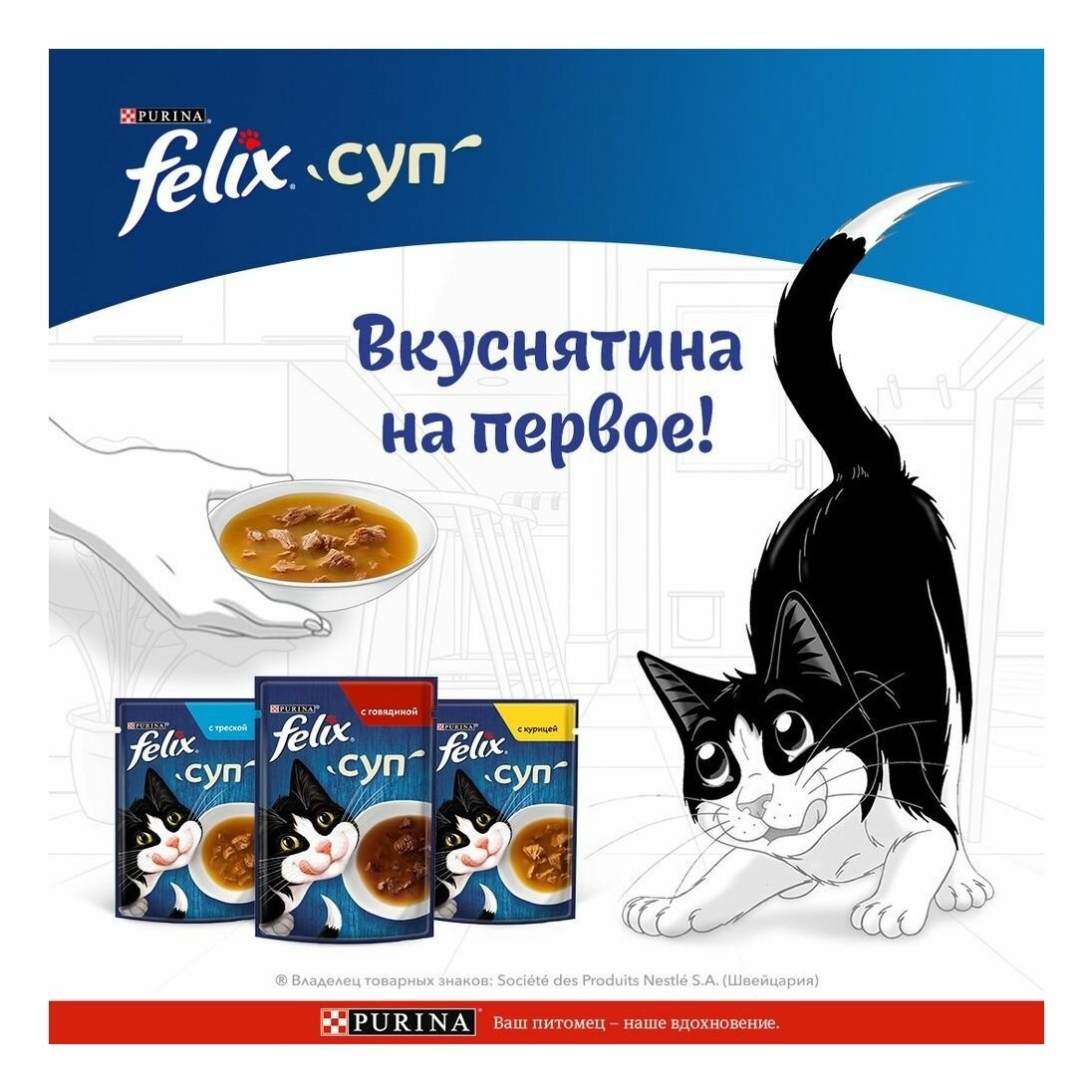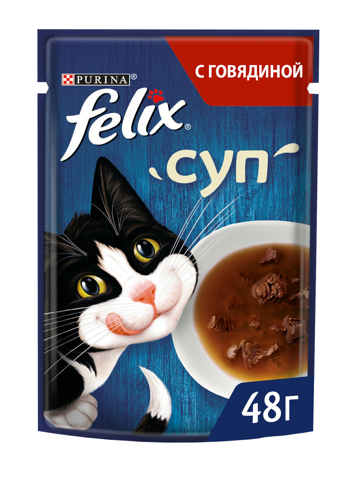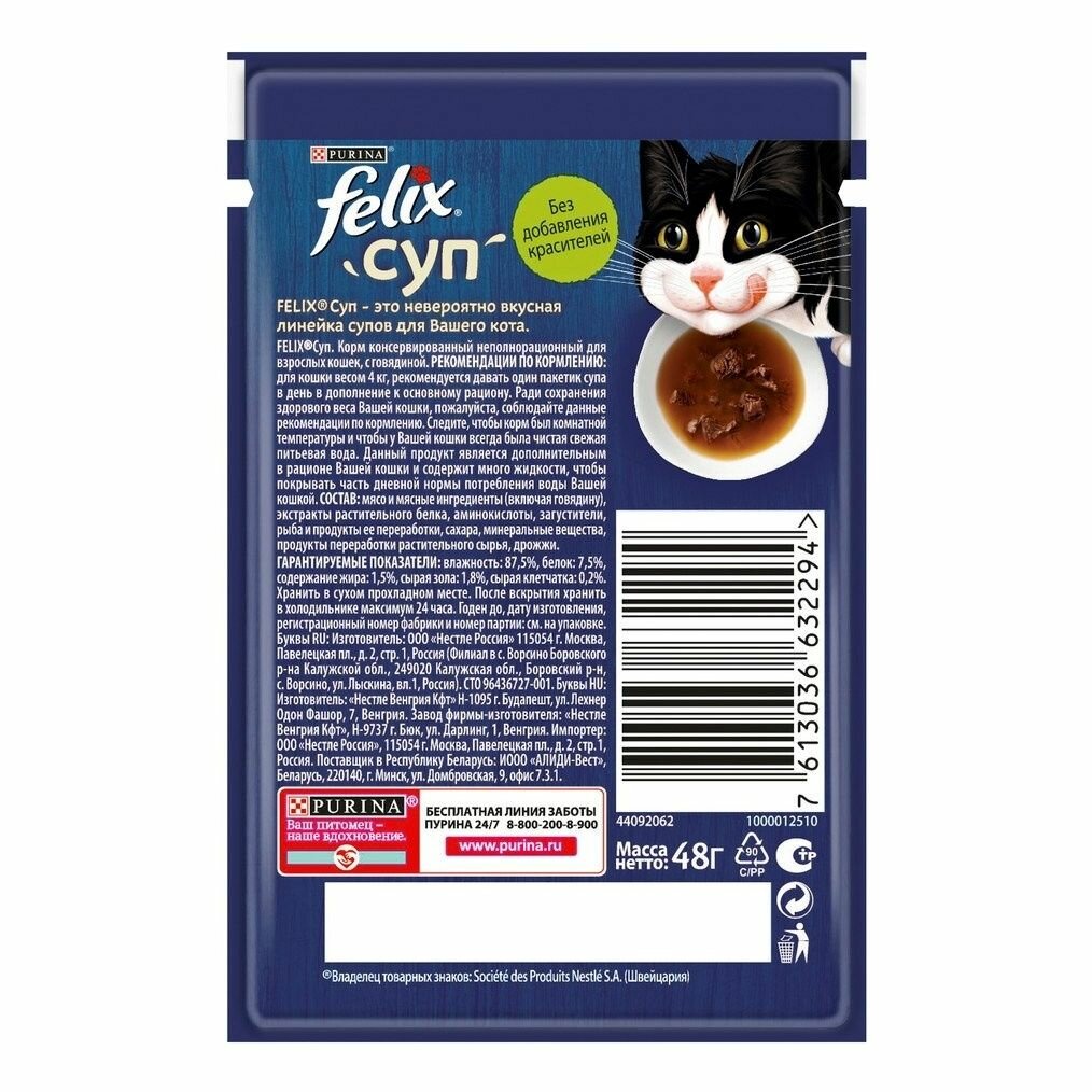 Felix влажный корм для взрослых кошек суп с говядиной в паучах - 48 г х 36 шт интересное: