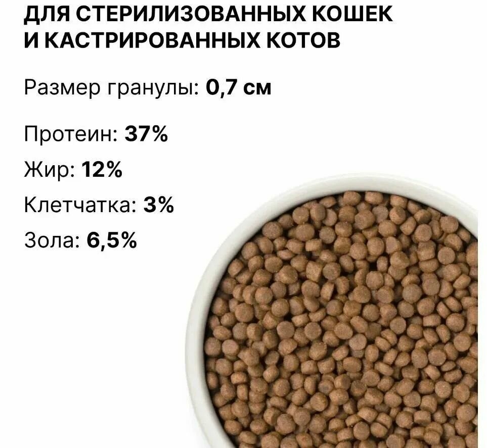 | Особые потребности | беззерновой / гипоаллергенный / для вывода шерсти / для живущих в помещении / для живущих на улице / для здоровья кожи и блеска шерсти / для здоровья костей и суставов / для стерилизованных/кастрированных / при чувствительном пищеварении / профилактика МКБ / профилактика избыточного веса |
