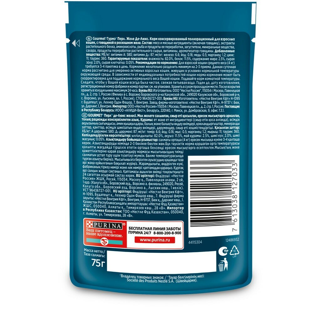 Влажный корм, "Gourmet Perle. Гурмэ Желе-де-Люкс", для взрослых кошек, с говядиной, 75г 12 шт