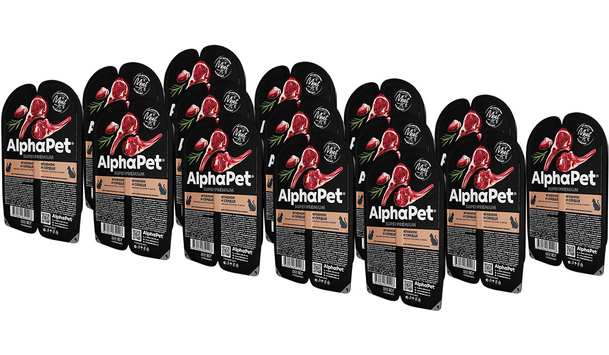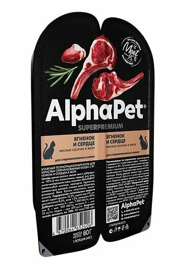 Купить AlphaPet Superpremium Влажный полнорационный корм для взрослых стерилизованных кошек с ягненком и сердцем в желе 80г (Упаковка 15 блистеров)