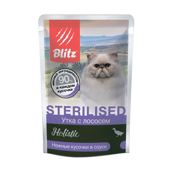 BLITZ HOLISTIC STERILIZED д взр кастр котов и стер кошек утка лосось в соусе пауч 85 гр 85 гр х 5 шт