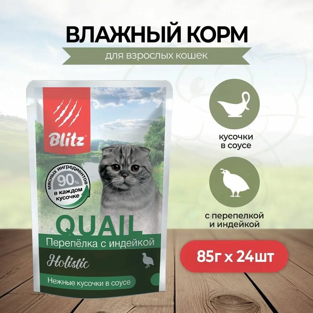 BLITZ HOLISTIC QUAIL для взрослых кошек с перепелкой и индейкой в соусе пауч 85 гр 85 гр х 5 шт