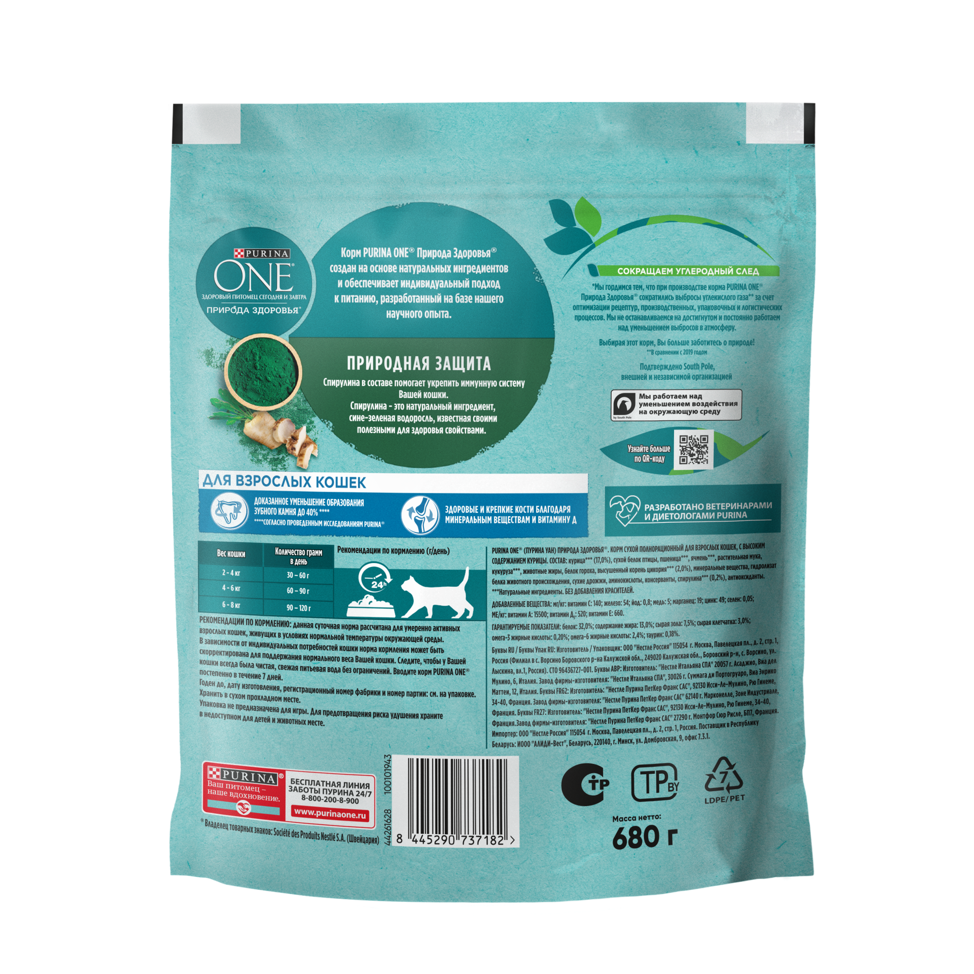 Купить PURINA ONE Природа Здоровья 680 г сухой корм для взрослых кошек с высоким содержанием курицы и спирулиной