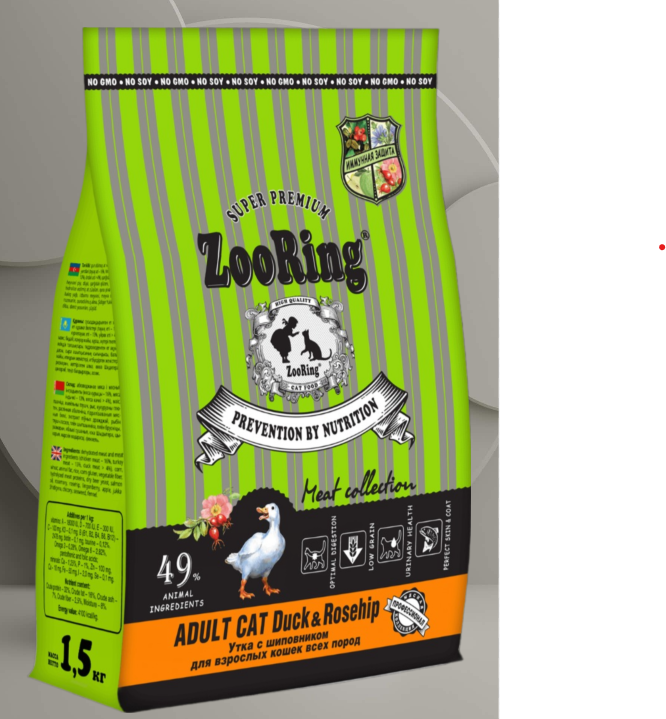 Сухой корм ZooRing ADULT CAT утка с шиповником для кошек, 1,5кг