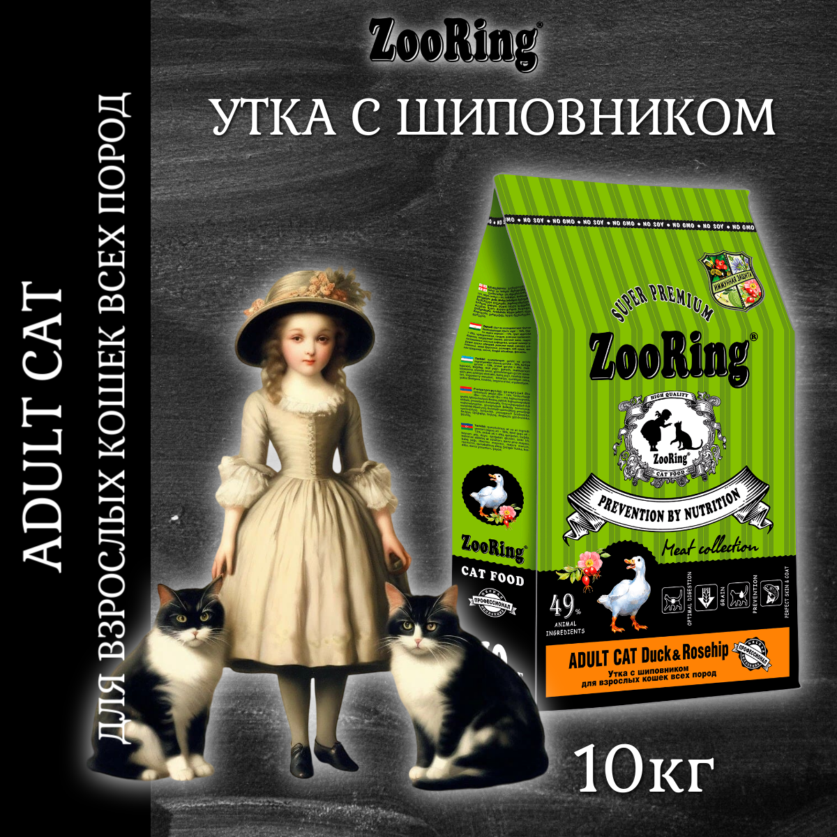 Сухой корм Зооринг / ZooRing Adult Cat Duck&Rosehip для взрослых кошек, утка с шиповником, 10 кг