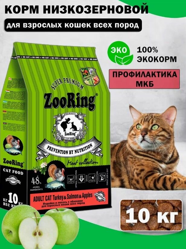 Сухой корм ZooRing ADULT CAT TURКEY индейка и лосось с яблоком для кошек, 10кг