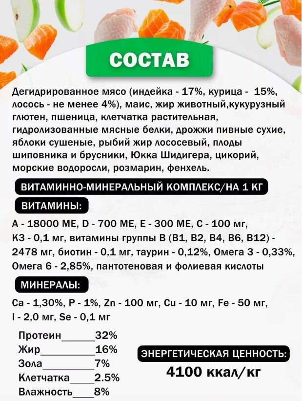 | Класс ингредиентов | премиум / суперпремиум |