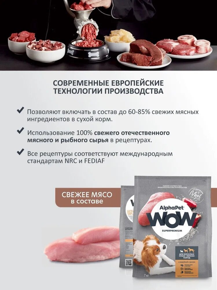 AlphaPet Wow - Сухой корм для взрослых собак мелких пород, с Индейкой и Рисом (7 кг)