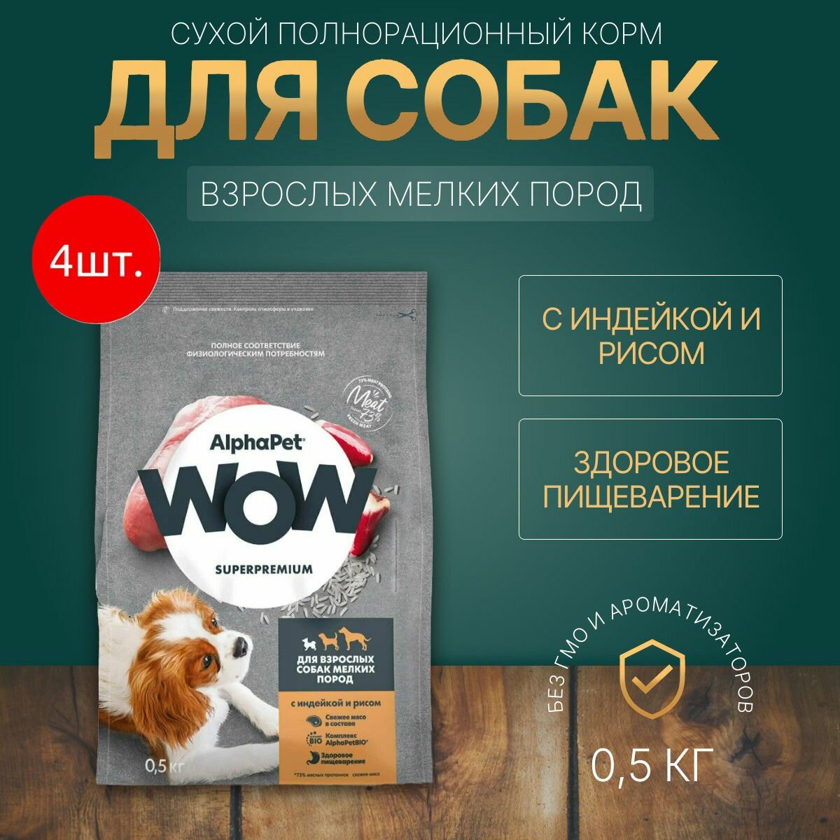 Купить ALPHAPET WOW SUPERPREMIUM 500 гр сухой корм для взрослых собак мелких пород с индейкой и рисом, 4 уп