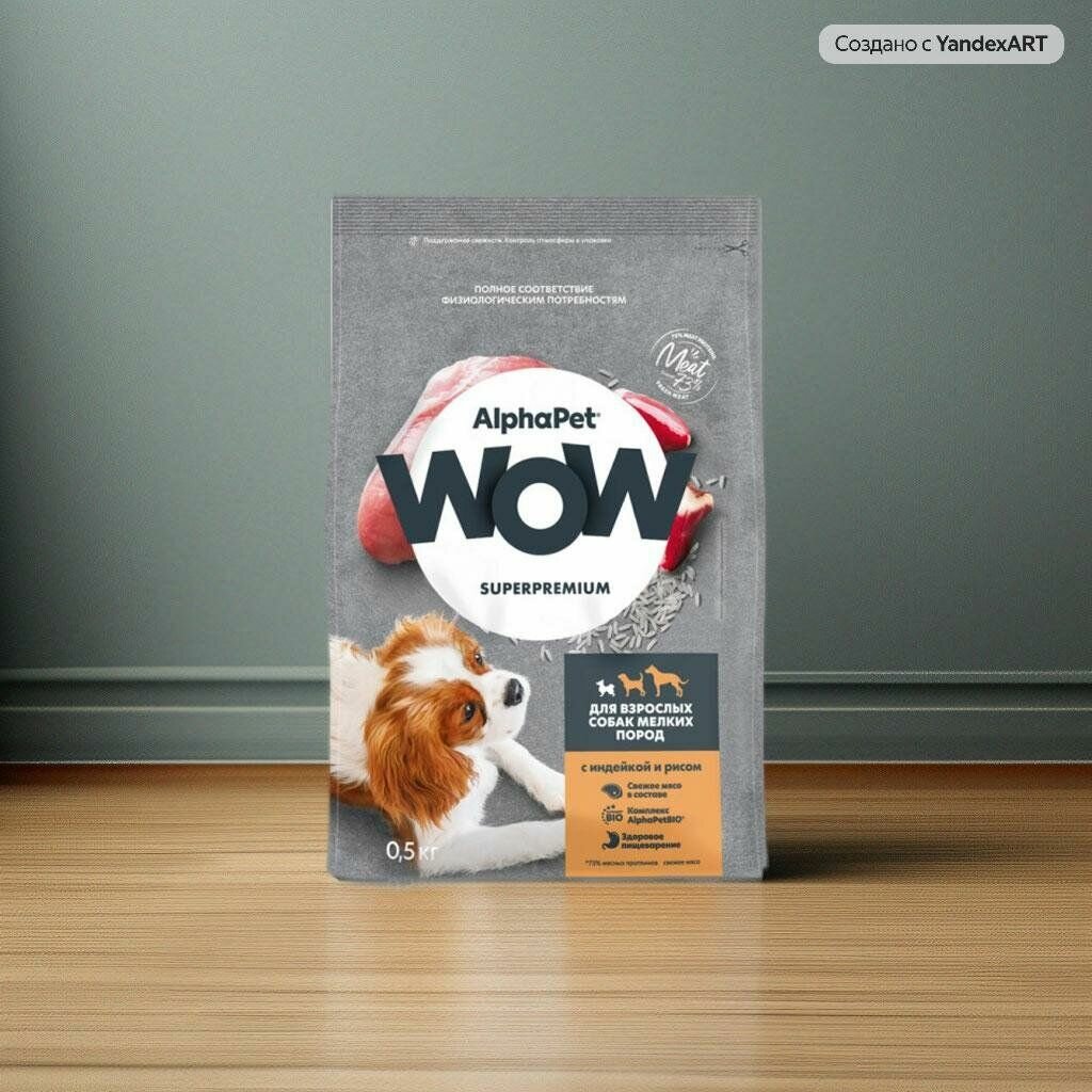 Сухой корм AlphaPet WOW Superpremium для собак мелких пород, с индейкой и рисом, 1,5 кг