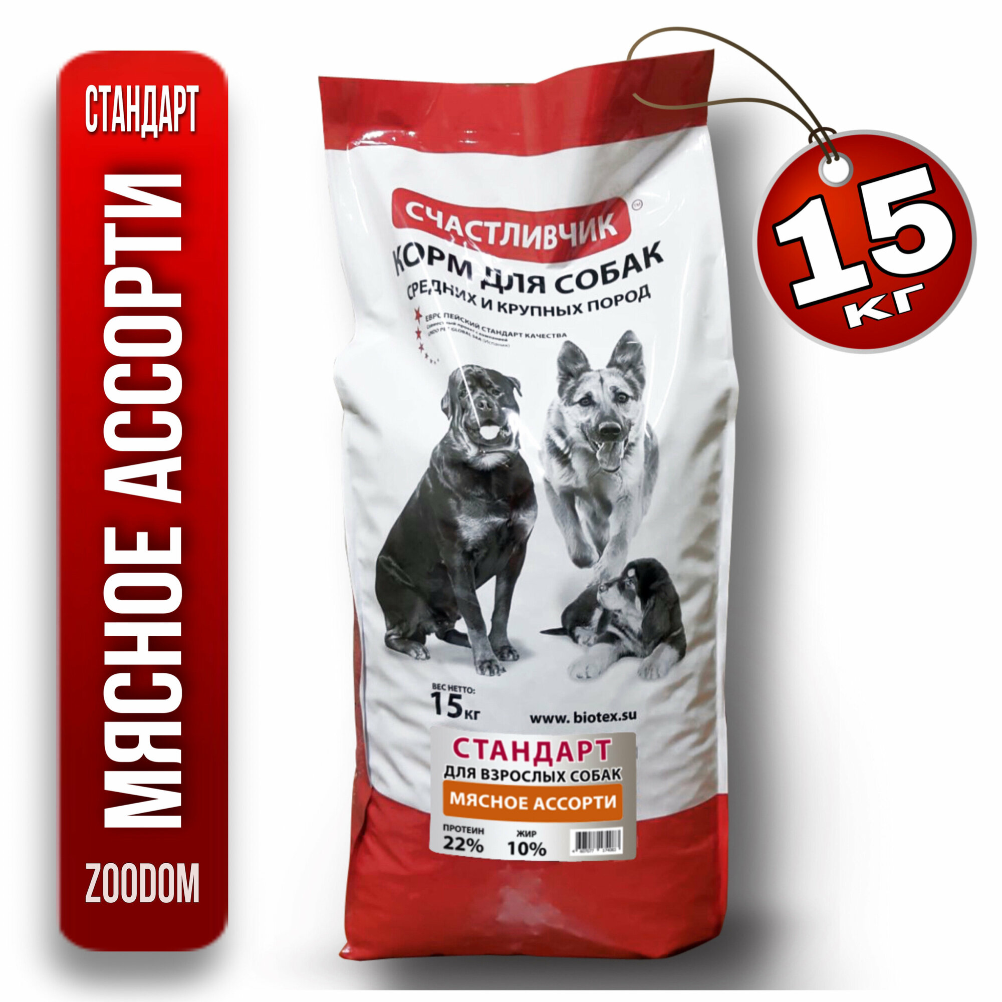 Сухой корм для собак Счастливчик мясное ассорти 1 уп. х 1 шт. х 15 кг (для средних и крупных пород) интересное: