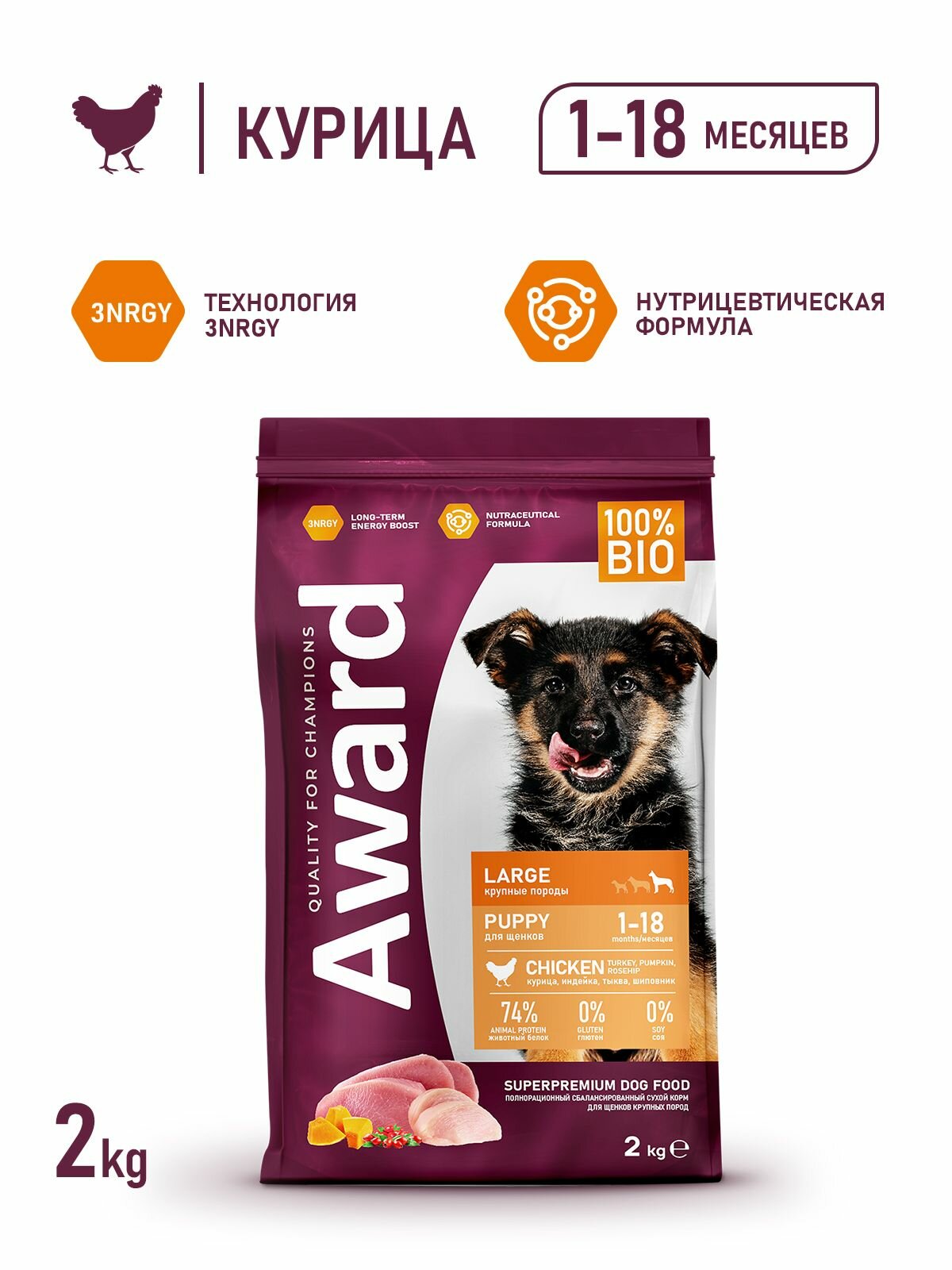 Award - Сухой корм для щенков от 1 месяца крупных пород с курицей и индейкой (2кг)