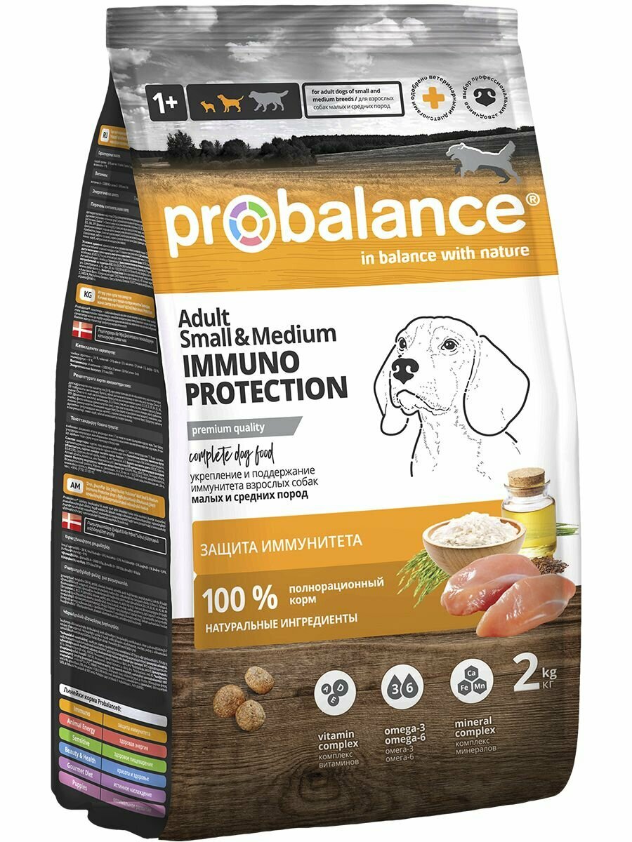 Купить Probalance для собак малых и средних пород, Adult Small&Medium Immuno Protection, пакет 2 кг