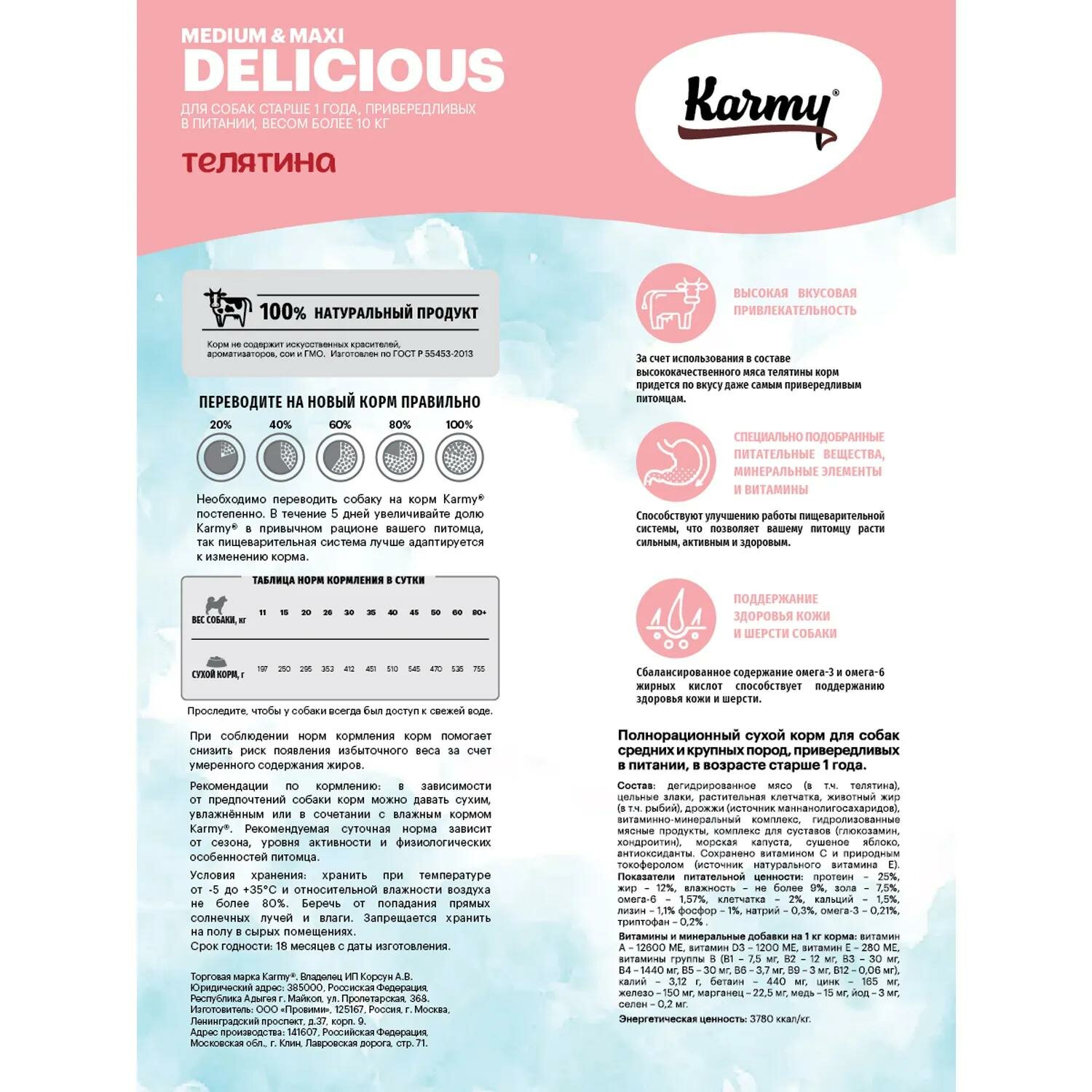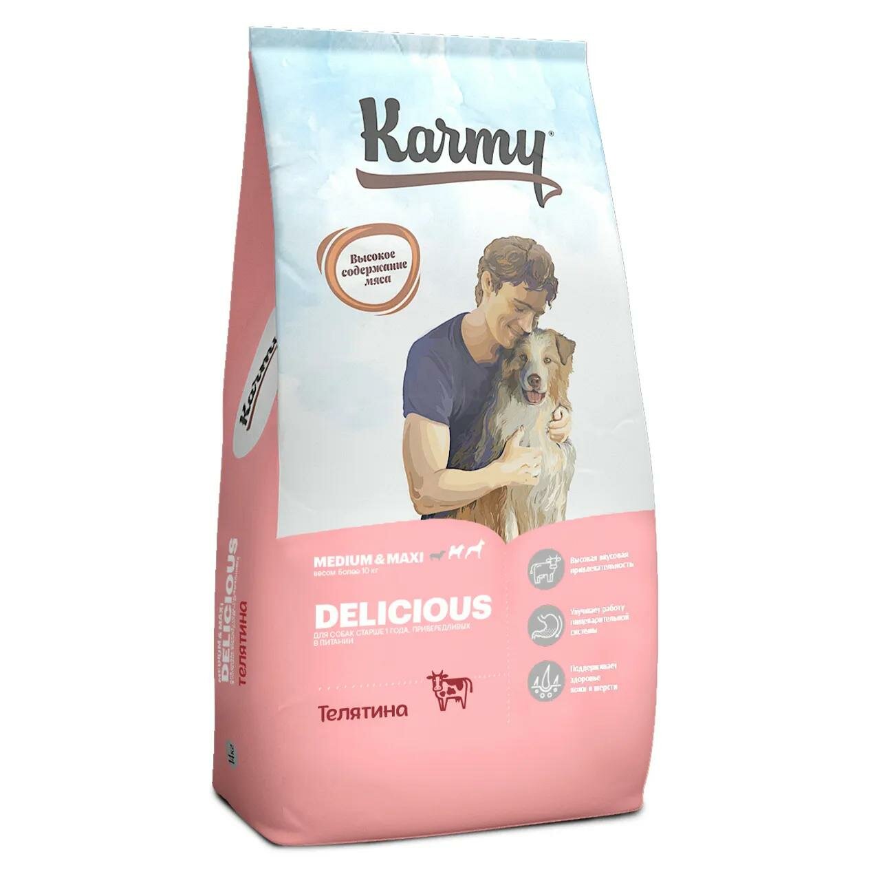 Купить KARMY DELICIOUS MEDIUM & MAXI для привередливых взрослых собак средних и крупн пород с телятиной 14 кг