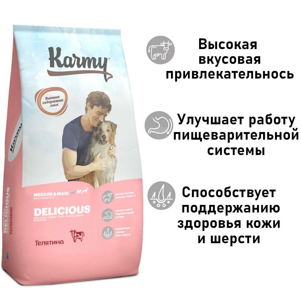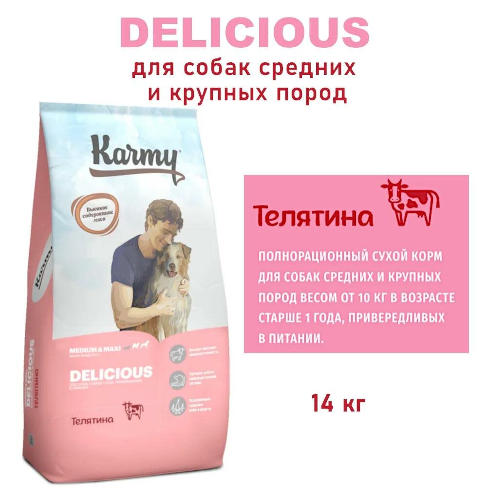 Сухой корм Karmy Delicious Medium & Maxi для собак, привередливых в питании Телятина 14кг.