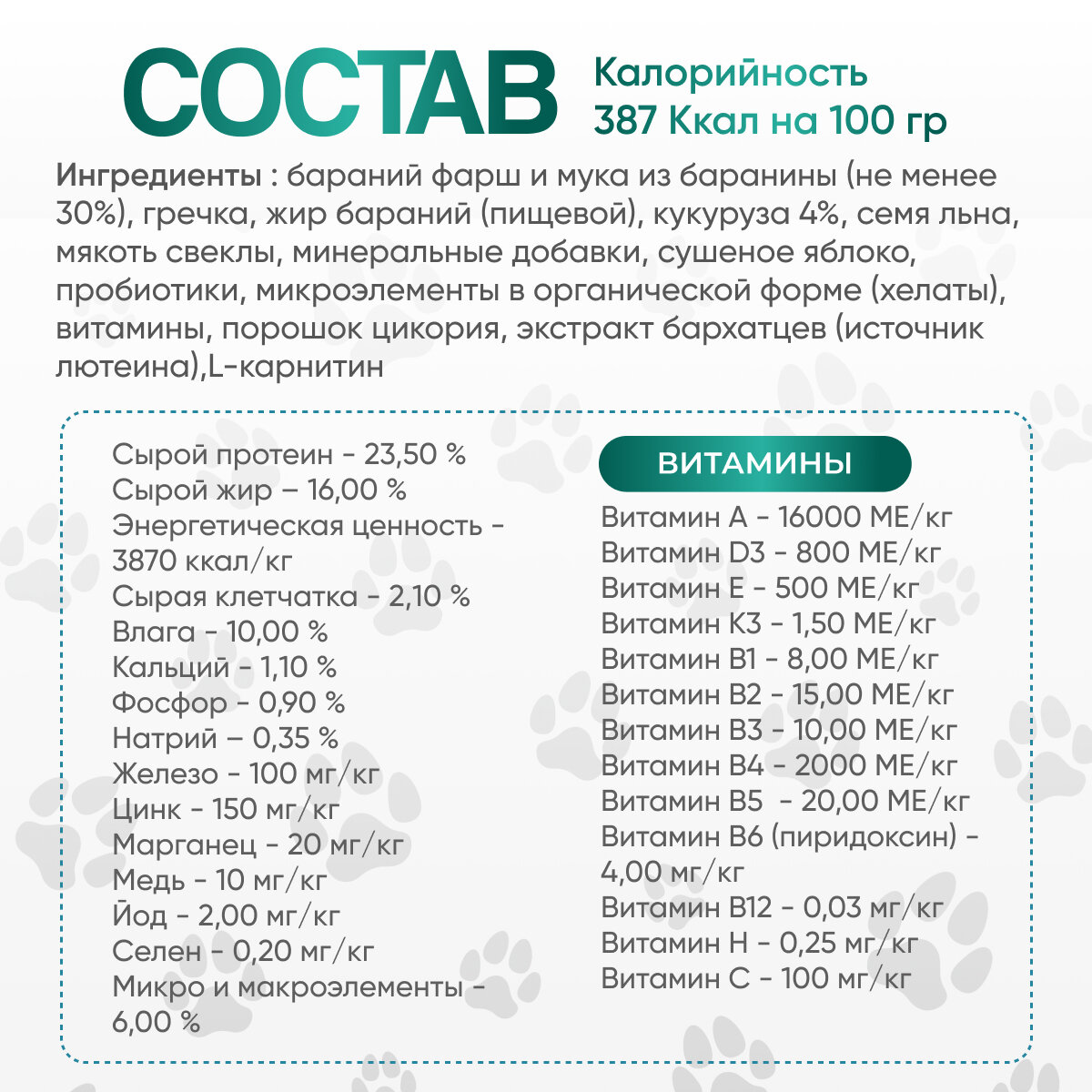 | Особые потребности | гипоаллергенный / для активных животных / для здоровья кожи и блеска шерсти / для здоровья костей и суставов / для снижения запаха стула / при чувствительном пищеварении |