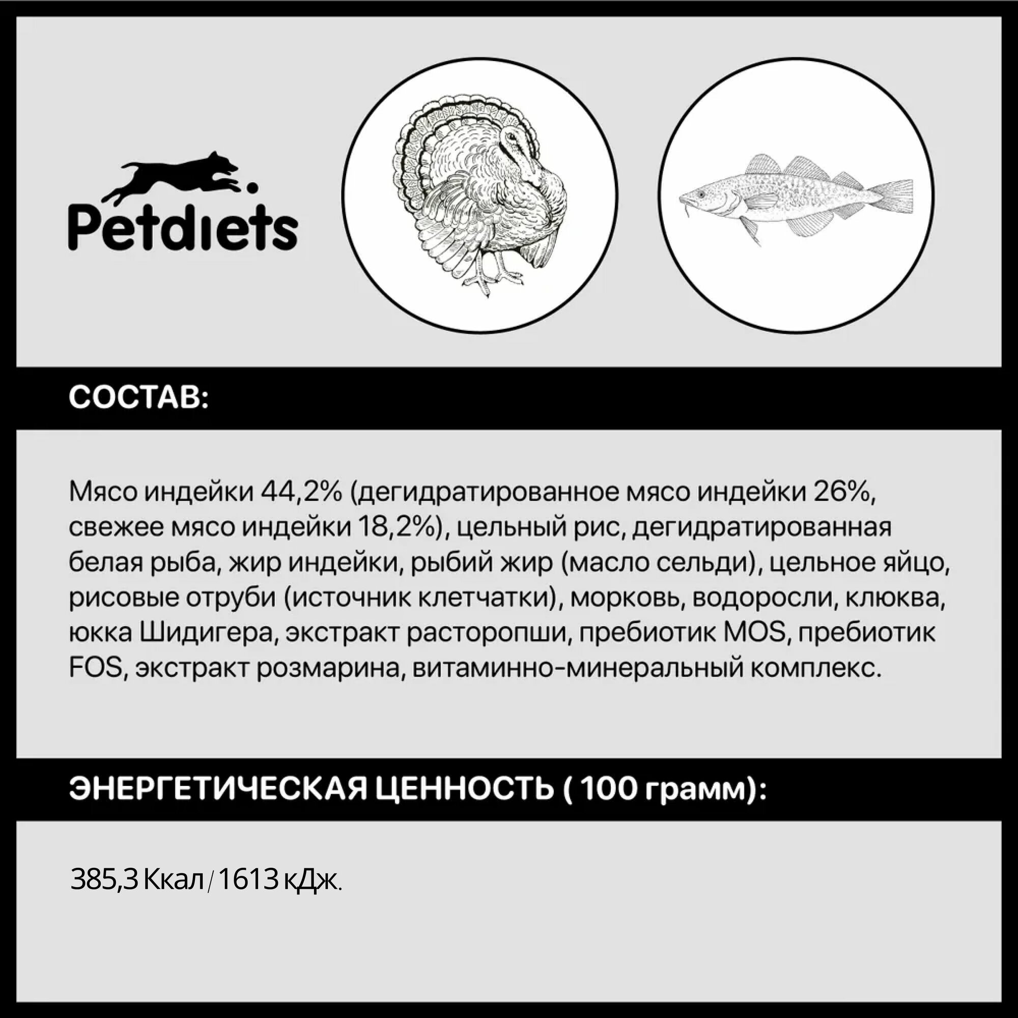 Корм сухой "Petdiets" (Петдаетс) для щенков средних и мелких пород собак, индейка, 8кг, содержание мяса 45,8% интересное: