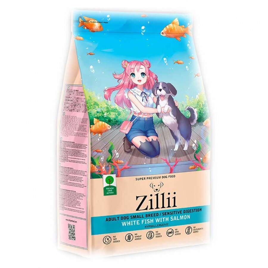 Zillii Adult Dog Small Breed Sensitive Digestion сухой корм для взрослых собак мелких пород с чувствительным пищеварением с белой рыбой и лососем - 800 г