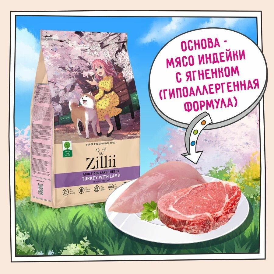 Корм сухой для собак крупных пород 3 кг, гипоаллергенный ZILLII (Зилли), Индейка с Ягнёнком