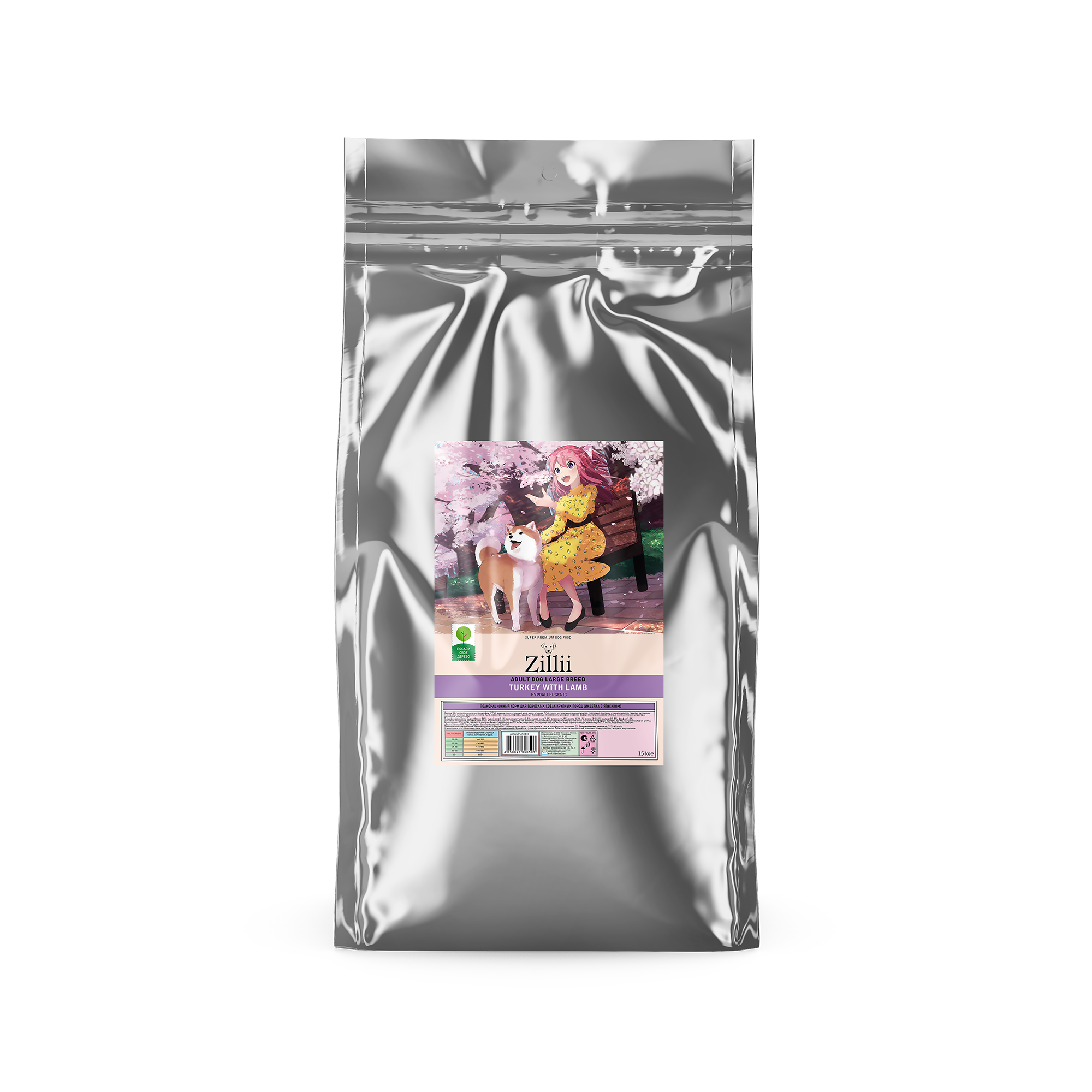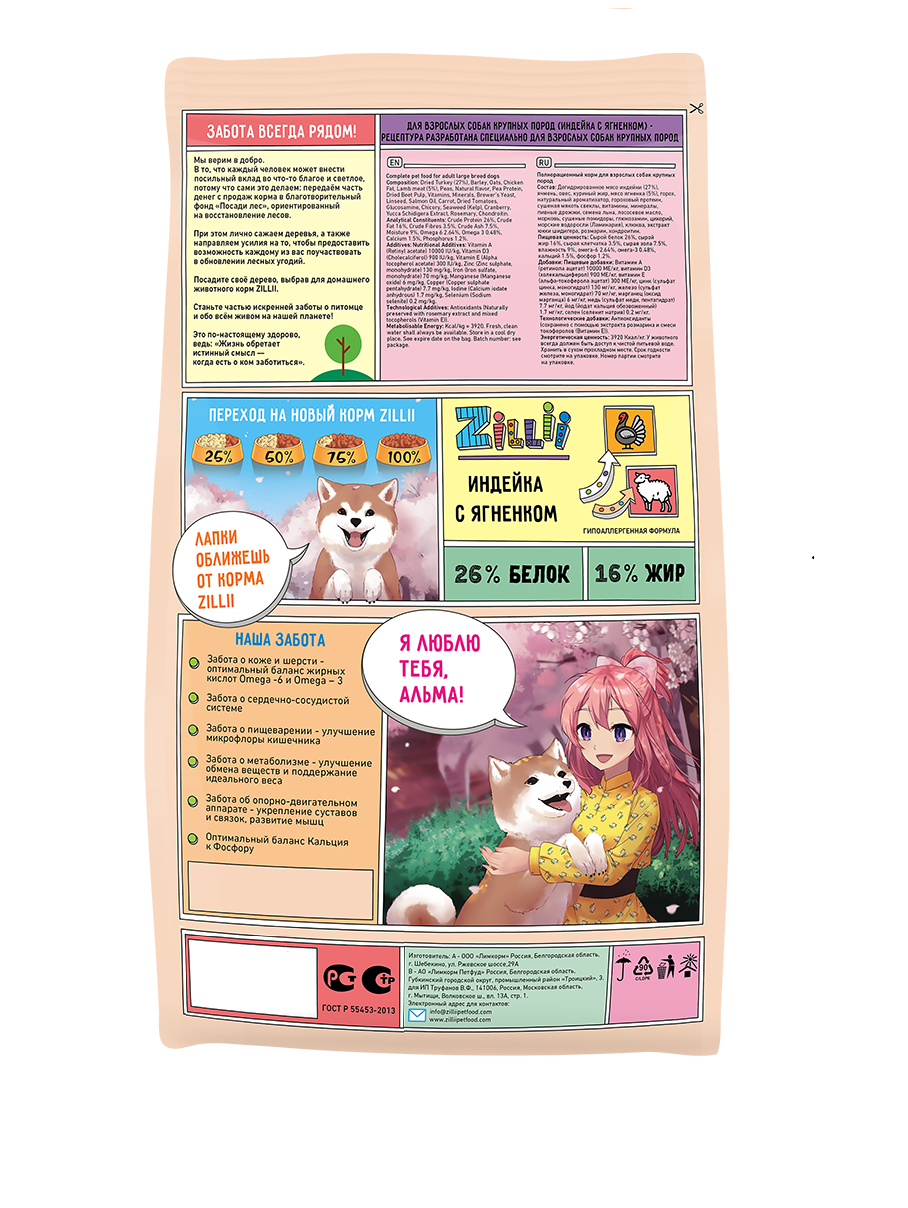 ZILLII (Зилли) Adult Dog Large Breed Сухой корм для взрослых собак крупных пород 15кг Индейка с Ягнёнком