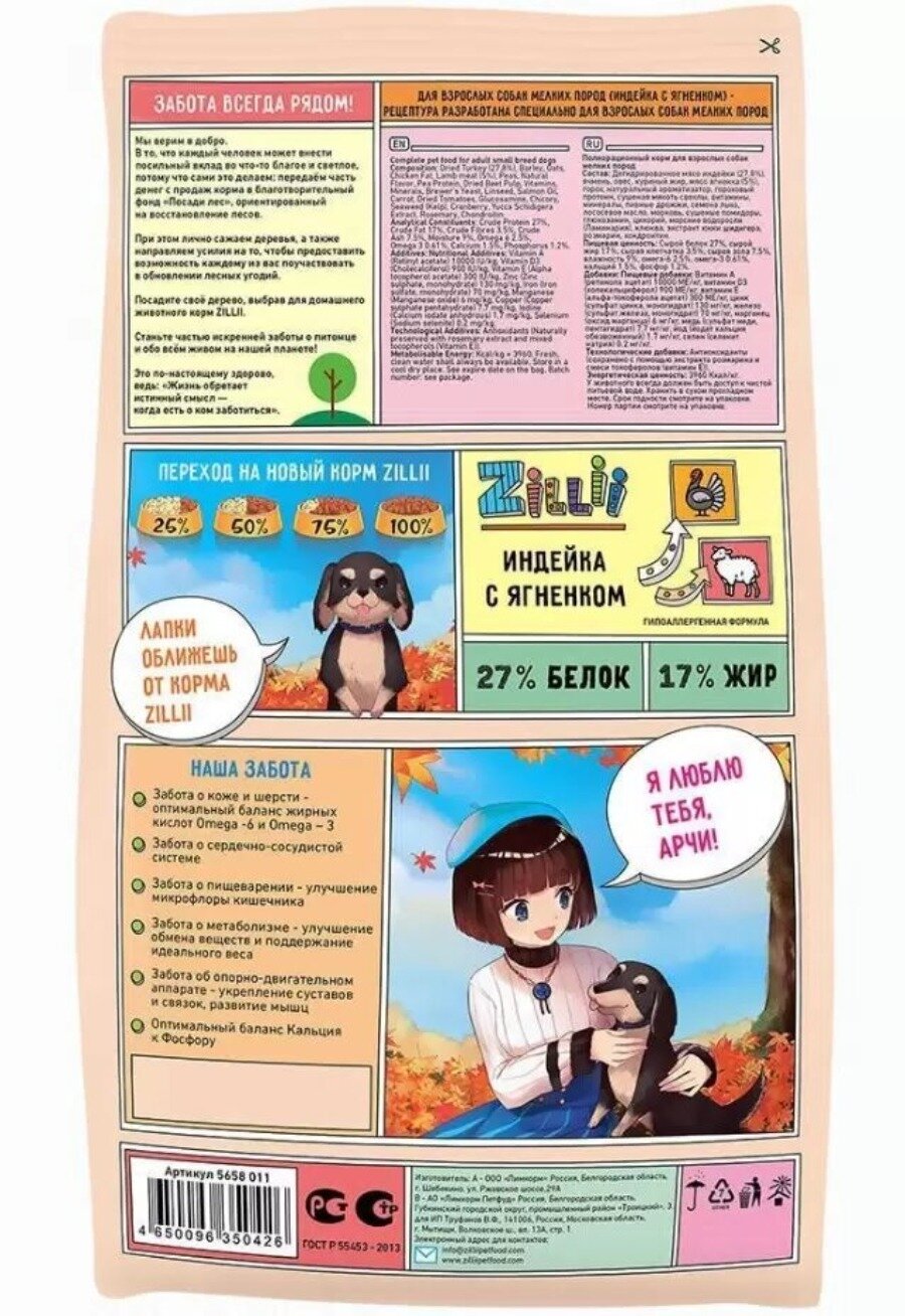 Zillii 5658013 Adult Dog Small Breed сухой корм для взрослых собак мелких пород Индейка с Ягнёнком 15кг