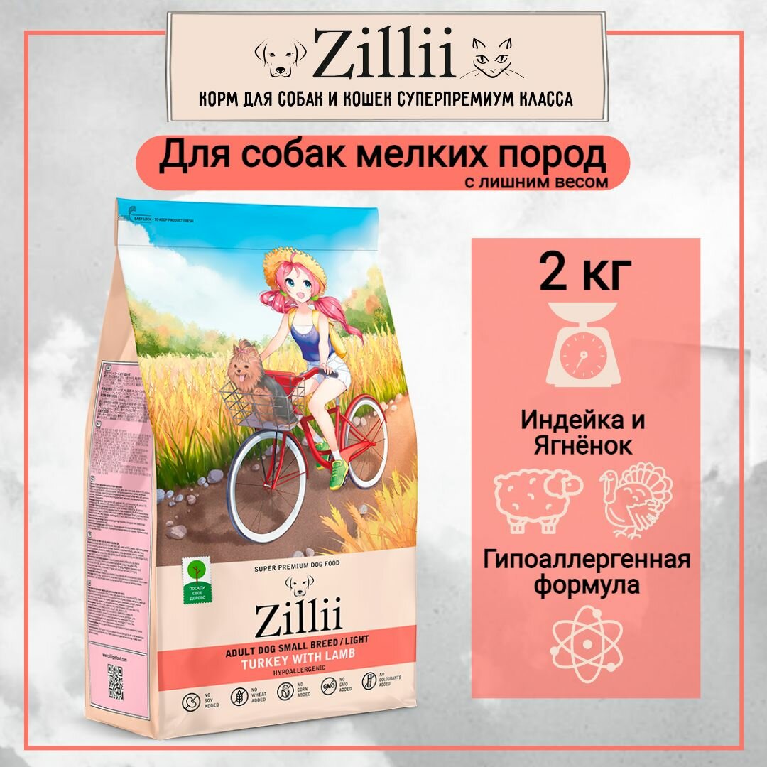 Купить ZILLII Light Adult Dog Small Breed Сухой корм для собак мелк. пород с избыт. вес Индейка Ягненок 2кг