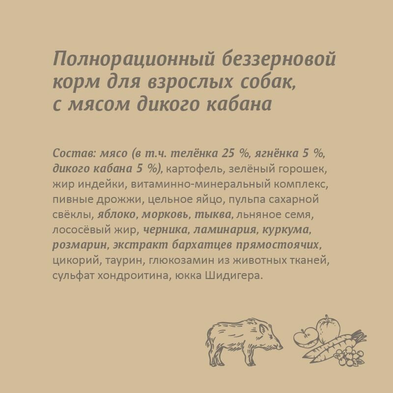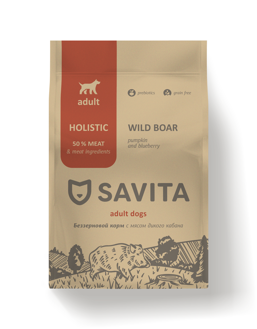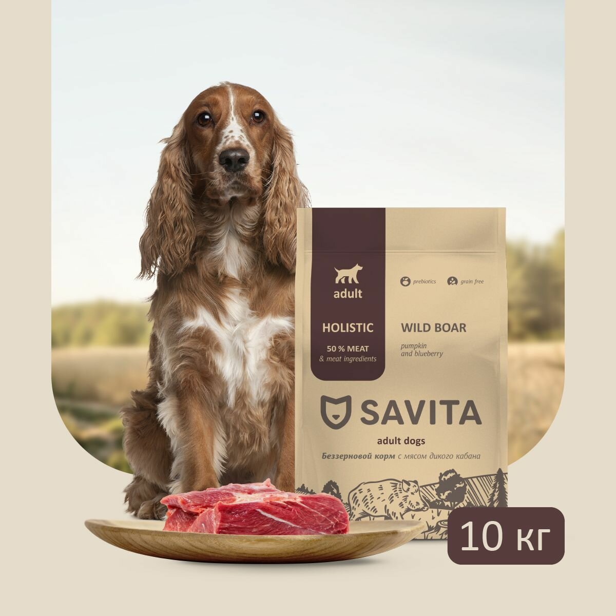 SAVITA беззерновой сухой корм для взрослых собак с мясом дикого кабана, 10кг