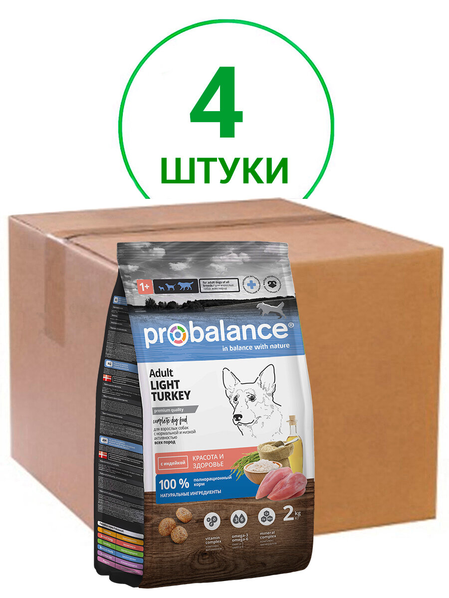 Корм сухой ProBalance Adult Light Turkey для собак всех пород c низкой или нормальной активностью с индейкой, 15 кг