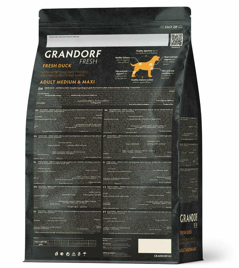 GRANDORF Fresh Dog Adult MED&MAXI Duck&Sweet Potato (Свежее мясо утки с бататом для собак средних и крупных пород) 1 кг