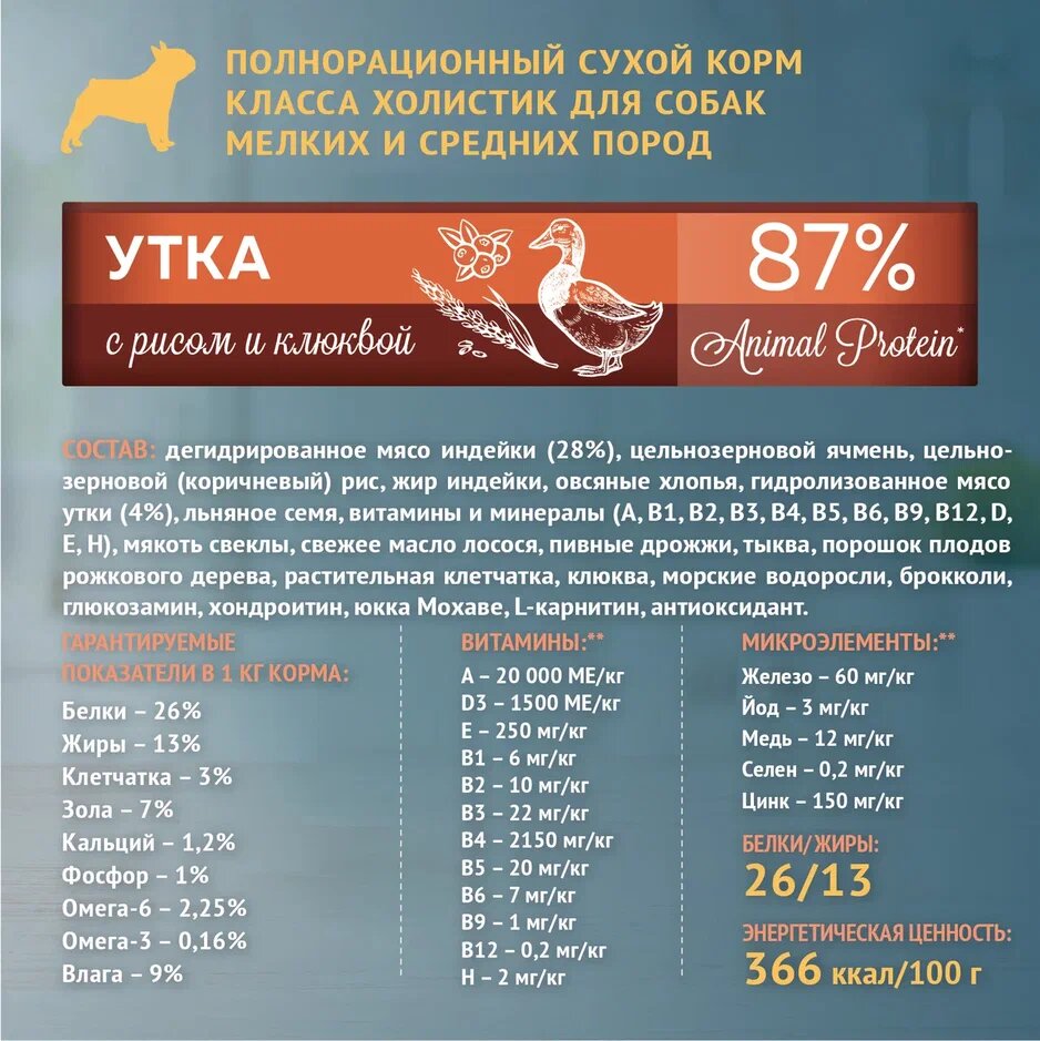 Зоогурман Holistic сухой корм для взрослых собак мелких и средних пород, с уткой, рисом и клюквой - 1,5 кг интересное: