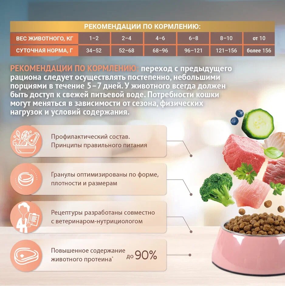 | Особые потребности | гипоаллергенный / для здоровья кожи и блеска шерсти |