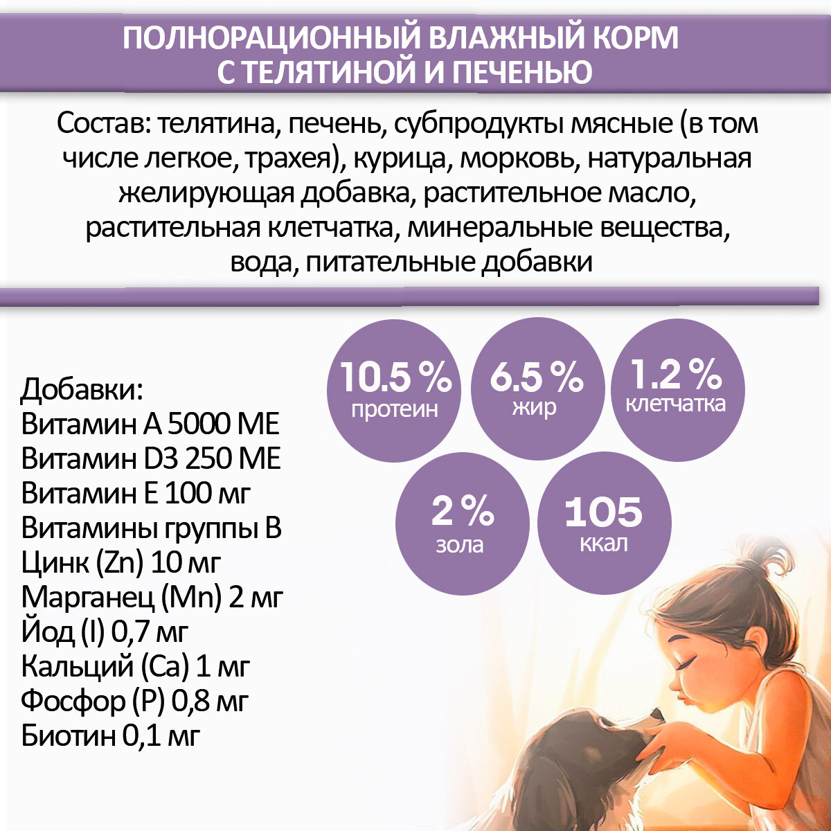 | Возраст животного | взрослые (1-6 лет) / пожилые (7+) / щенки (до 1 года) |