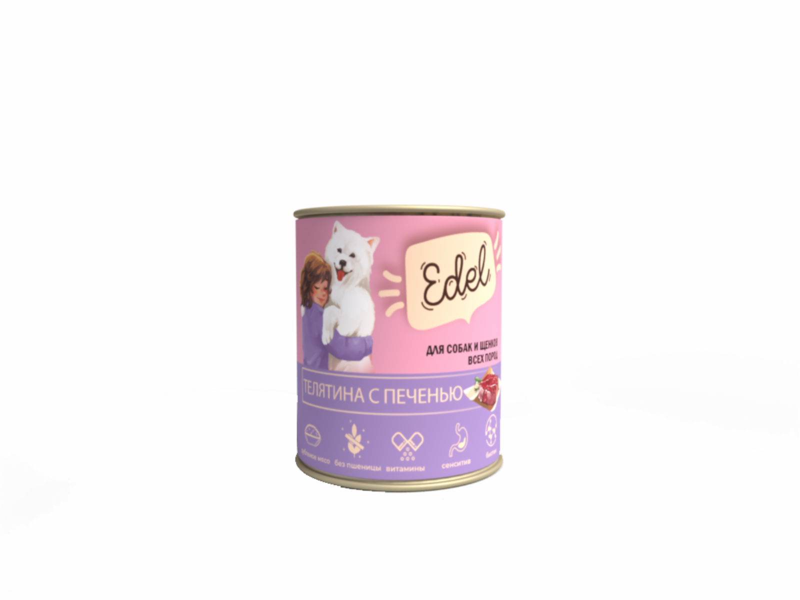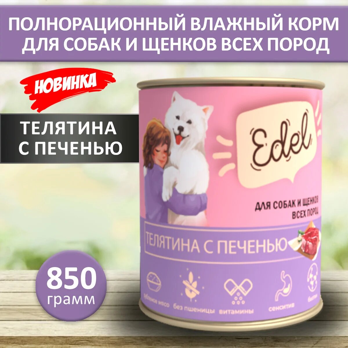 Edel влажный корм для щенков и взрослых собак всех пород, с телятиной и печенью, в консервах - 850 г х 6 шт